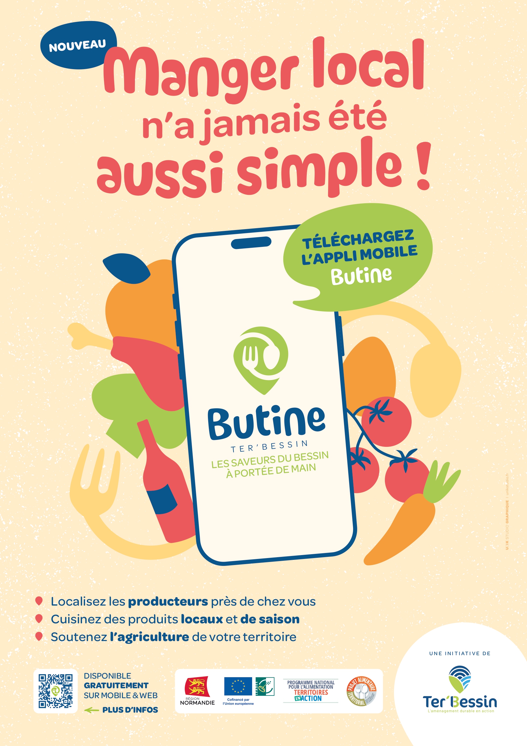 Disponible sur Apple Store et Play Store ou sur butine.ter-bessin.fr